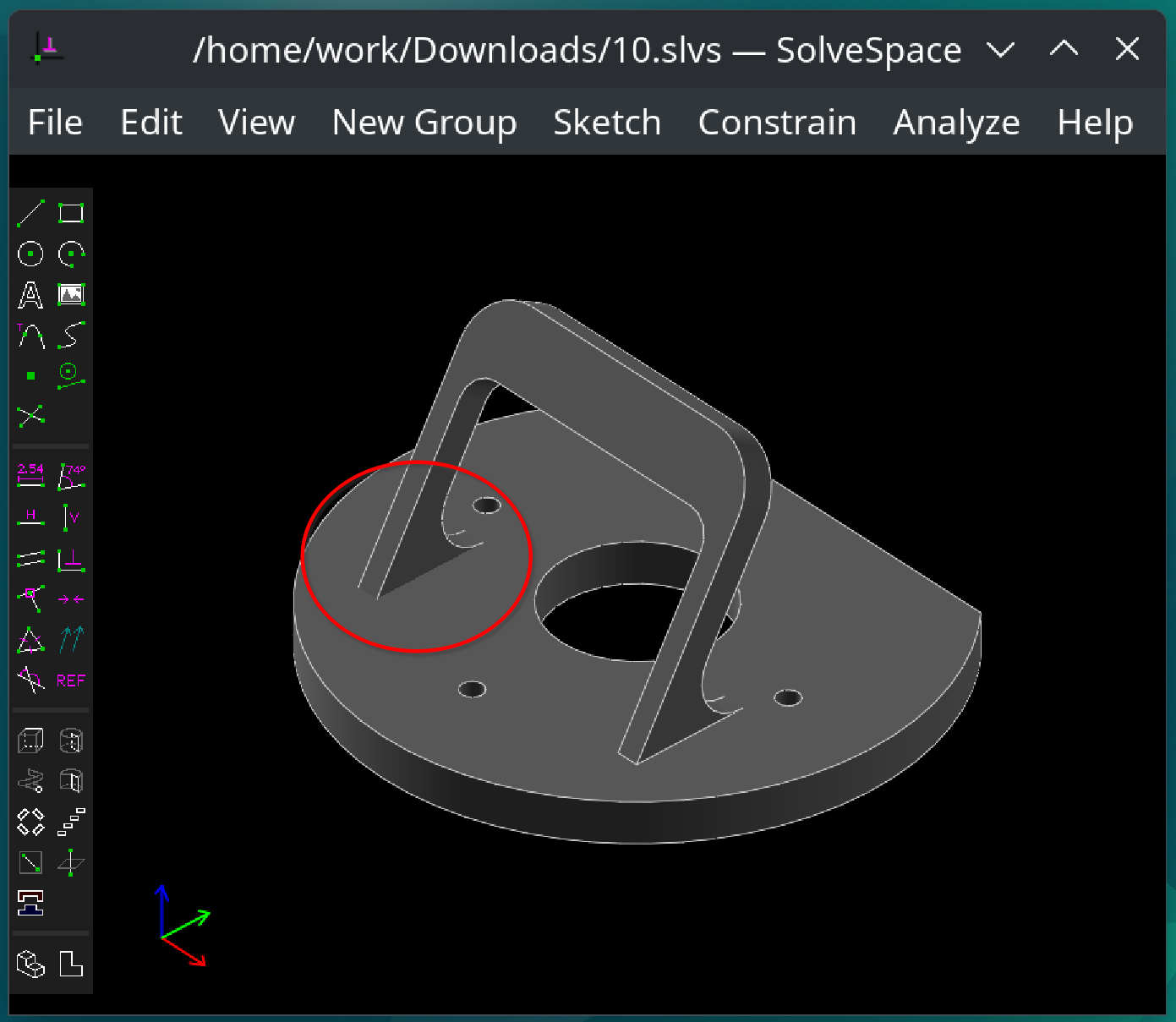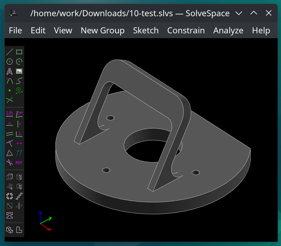 Solvespace version and parameters in use to draw the piece :