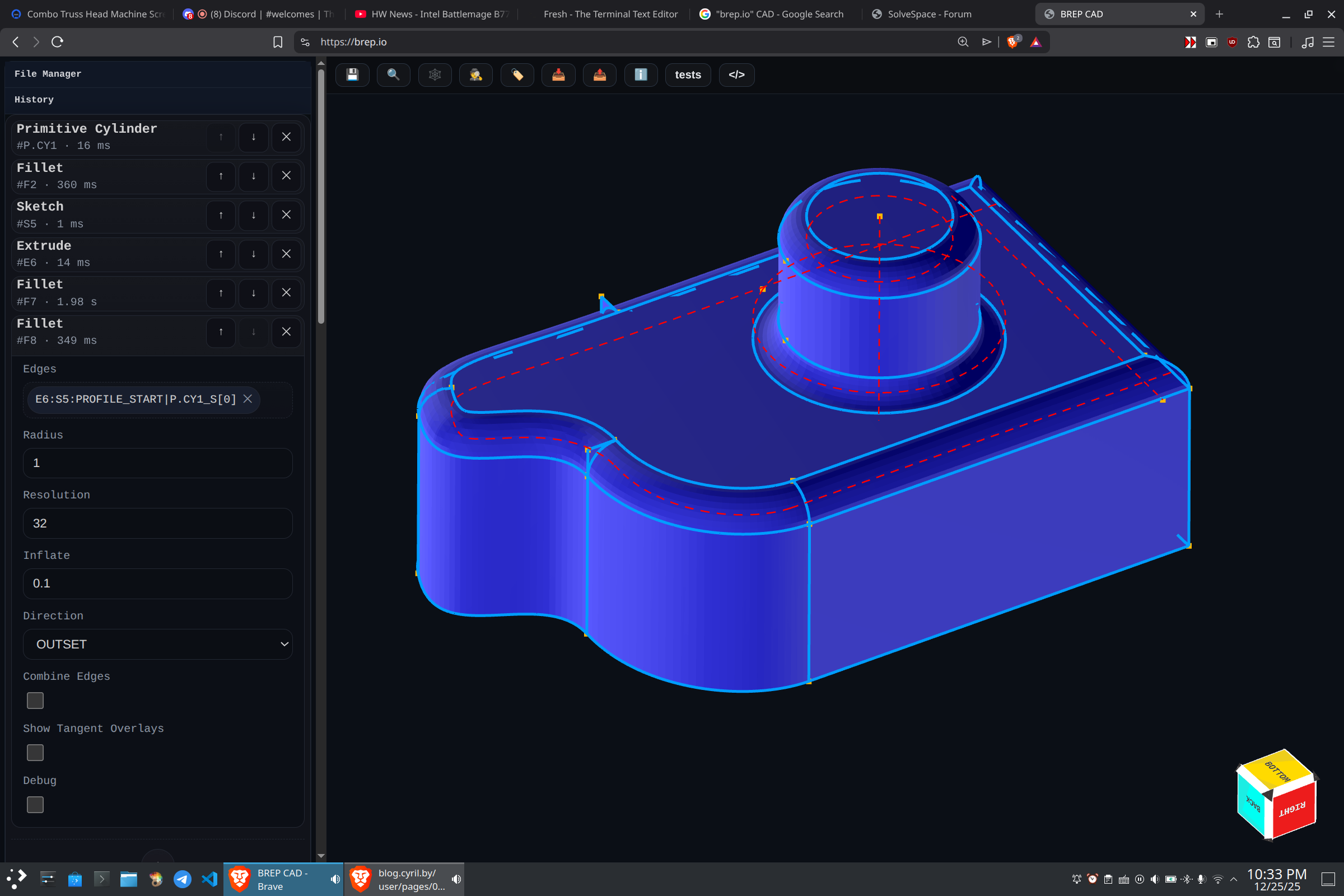 Hey guys I haven't been frequenting the forum a lot as of late, but I just saw on Hackaday that there is a new browser based CAD called BREP.io. I was digging into it a bit and found he had posted on the FreeCAD forum: