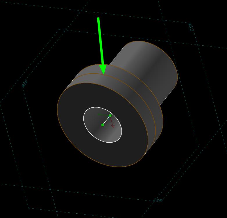 Hi, new user here. I'd like to put a small cross hole in the position indicated by the green arrow. Is there some way to create a new sketch so the plane is tangential to the circle or do I need to create a new sketch from the origin looking 'up' towards the inside of the object?
